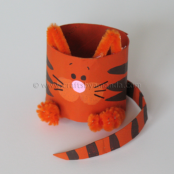 Cut a strip from the remaining cardboard tube for the tail. Paint it orange and add brown stripes.