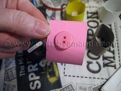 - Glue pink button to the cardboard tube for the nose.
