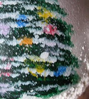 After adding the tree, and then the snow on the branches, I used a small paint brush and dabbed off all the excess paint, then gently dabbed on the “lights”. They blend into the snow and look like they are really glowing. :)