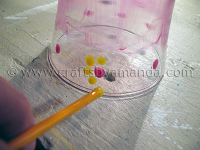 - Then I added decorations by dipping the handle end of my paintbrush into the enamels and dotted them onto the glasses.