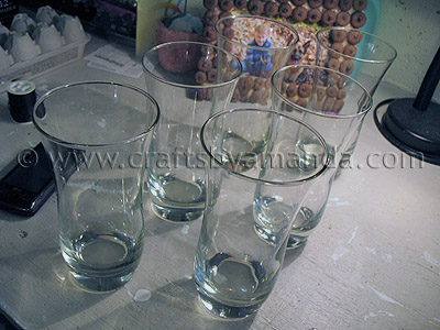 They dry clear and were perfect for this project! I started by turning the glasses upside down and painting in downward strokes. I didn’t paint all the way to the rim as DecoArt suggests that the paint should not touch surfaces that will be in contact with food.