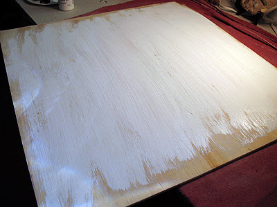 I don’t paint the entire board completely because when I’m all finished I want some areas to show bare wood, some to show bare and white, and some just white. Let the white dry completely.