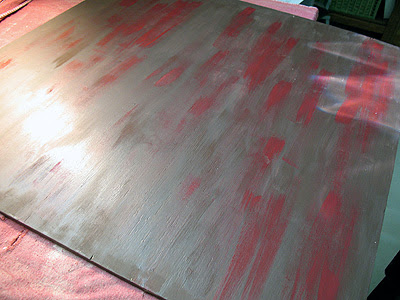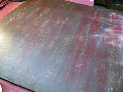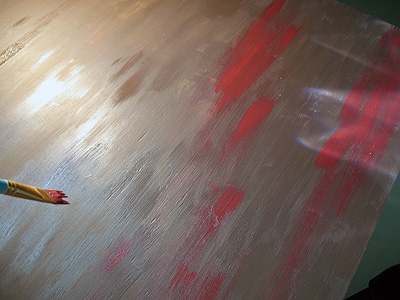 - Brush the red on lightly in random areas, keeping it in the same direction as the brown brushstrokes.