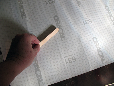 - When using a large piece of vinyl like this one I highly recommend having someone help you. It can be difficult to hold one end of the vinyl still while peeling the other. Prepare your vinyl by rubbing a straight edged item (credit card, jumbo craft stick, etc) all over the transfer paper backing.