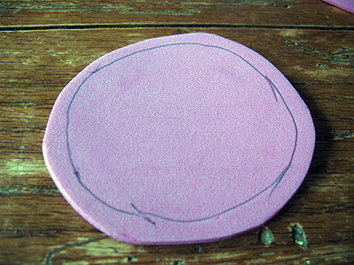 From the remaining foam, trace a circle around the bottom of the water bottle.
