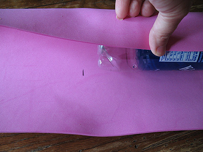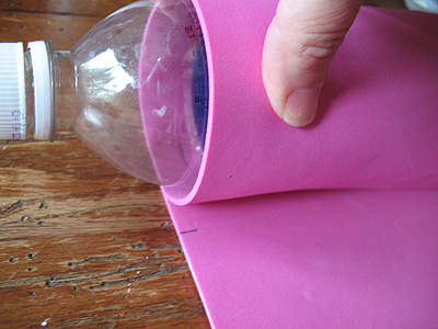 Begin by rolling the water bottle up in the craft foam. Wrap enough foam around the bottle to cover the bottle and overlap by about an inch. Mark with a pen or pencil.