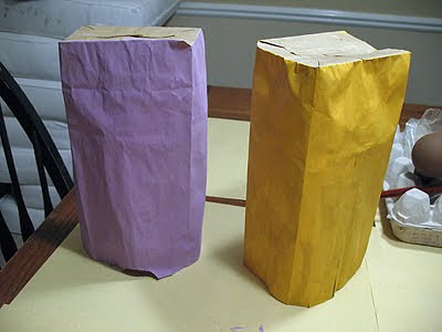 - Paint bag whatever color you like. Stand them up and let then dry. Add another coat and let dry again.