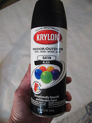 - I used a soft paintbrush to dust off the frame, then did three thin coats of satin black spray paint.