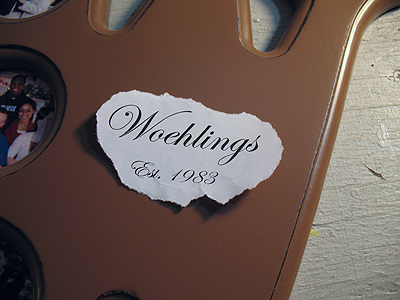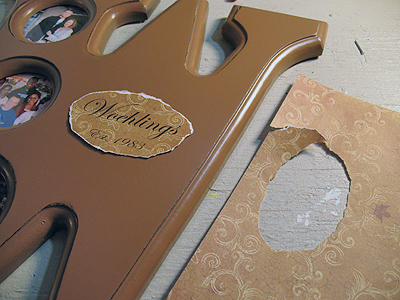 - I typed their last name and year of marriage into Word and printed it onto white paper to figure out the size and placement. Instead of cutting it out I decided to tear around the personalization.