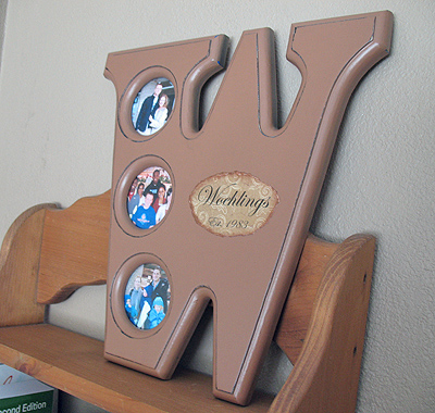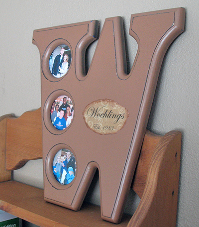 I used good ole Mod Podge to attach the name plaque to the frame, then added a coat of Mod Podge over everything.