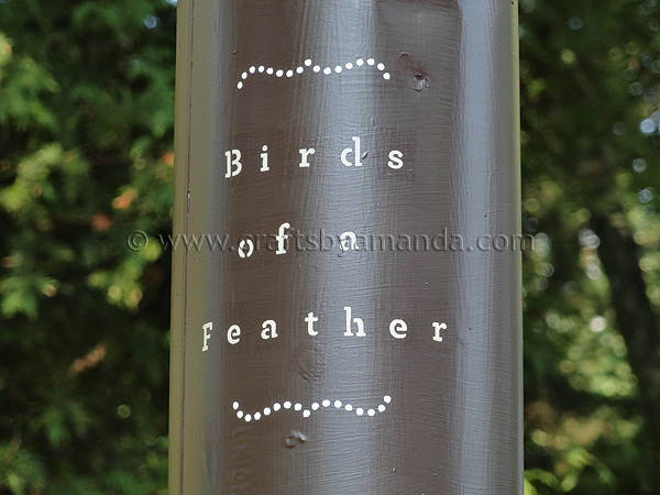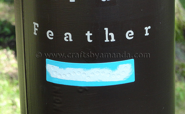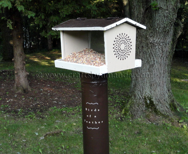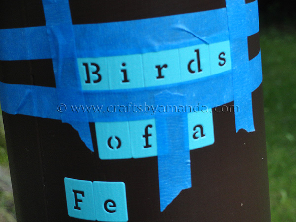 For the squirrel guard (that’s the metal tube under the feeder that stops squirrels from being able to climb up and eat all the bird seed!) was begging for a little typography. Martha has these awesome adhesive stencils that are absolutely perfect for rounded surfaces!