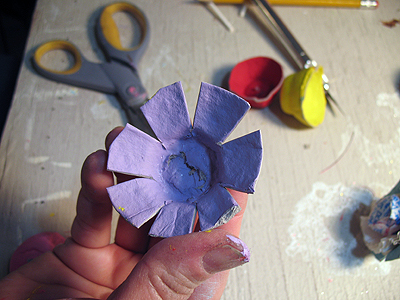 - Cut slits in egg carton and fold downward to create petals.