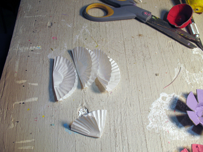 Paint the cardboard egg cartons inside and out. Use fun colors like yellow, pink, red, purple and light blue. Let dry. When dry cut out and trim.